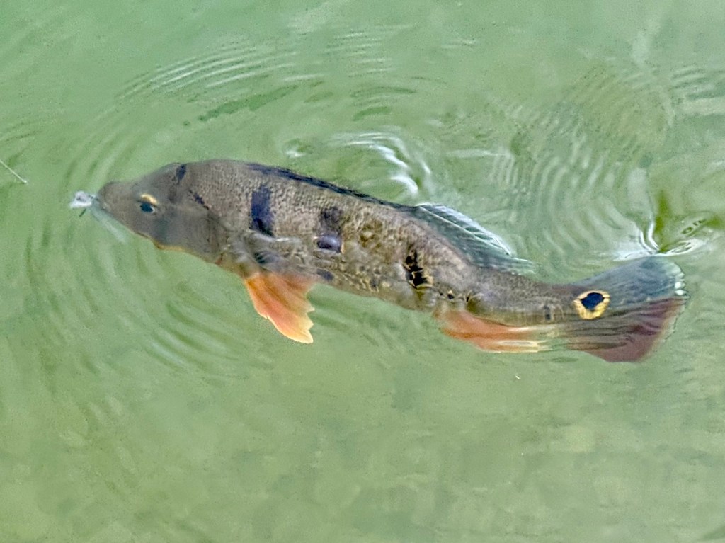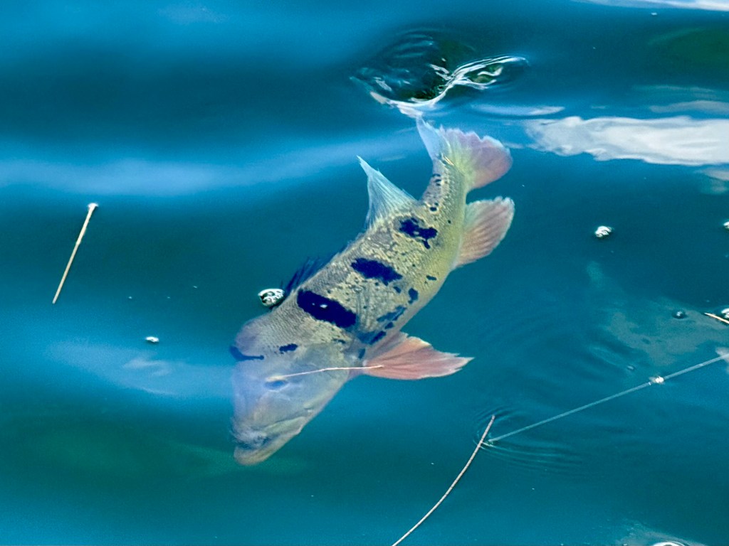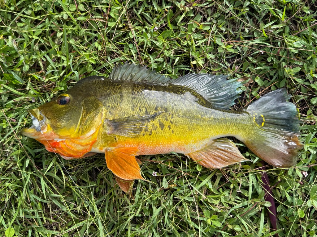 In a few minutes I’d hooked a scrappy, medium-sized peacock bass and the knot held despite the pea’s snapping tugs.