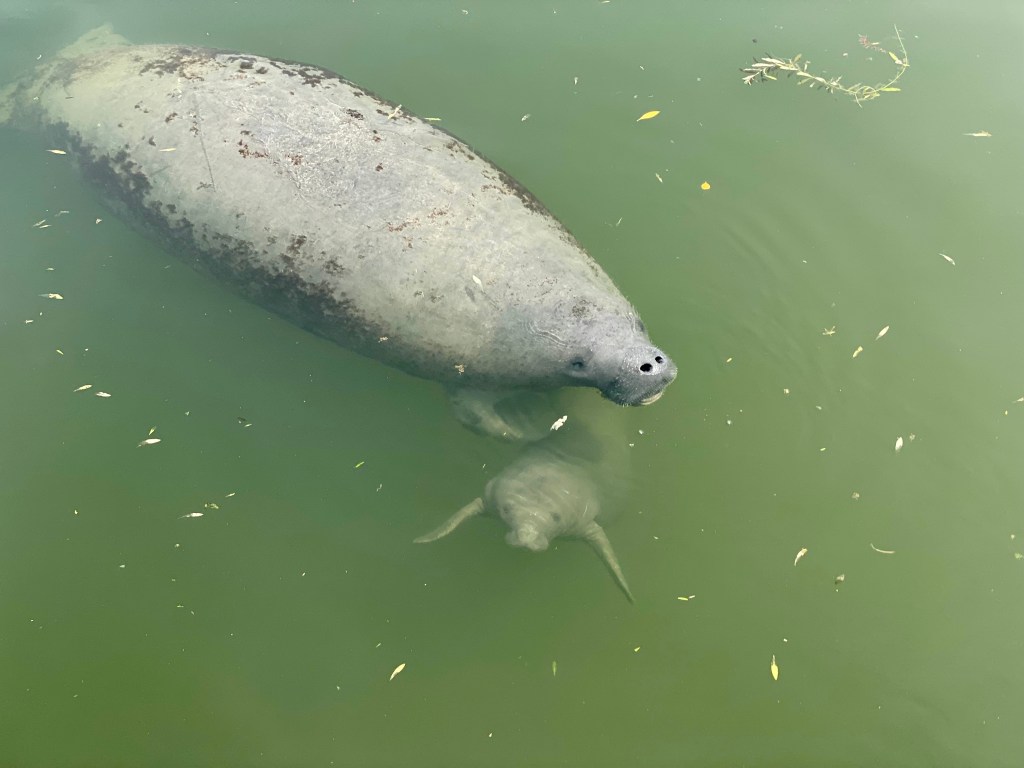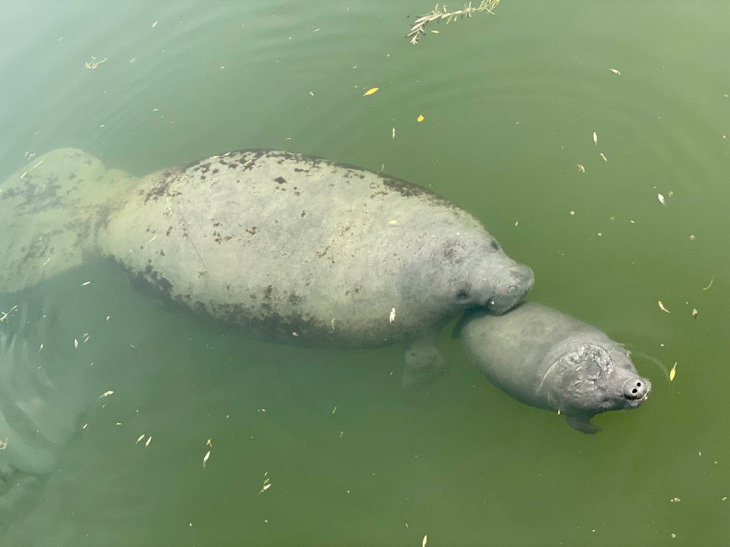 I took Caroline and Jason over to the marina to admire the assembly of mother and baby manatees.