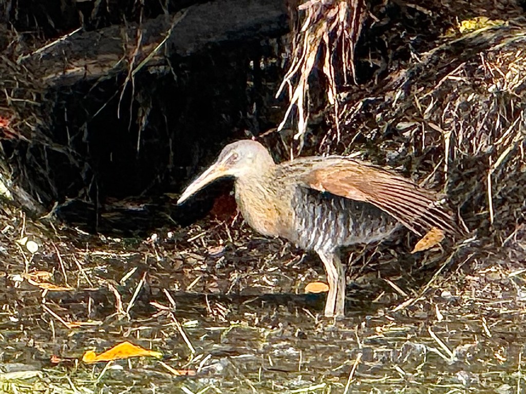 The low tide can bring spectacular birding as it did last week when baitfish and birds filled the runouts along one of the main channels. The flats were covered with winter waterbirds: White Pelicans, Black Skimmers, all the long-legged waders, Marbled Godwits, Short-billed Dowitchers, Wilson’s Plovers, and assorted “peeps”.