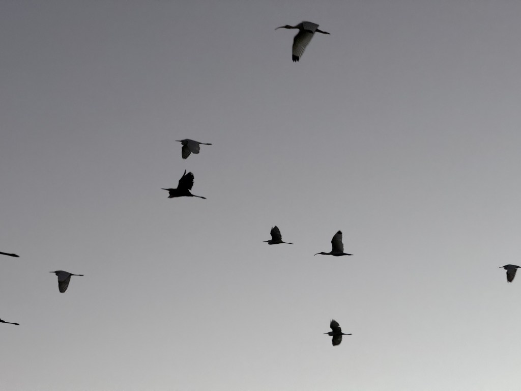 Great Egrets and White Ibis leaving their roosts. White birds look black in the pre-dawn light.Jeremy in the lead. One of his teenage kids sometimes joins us, but not if we’re going out this early.