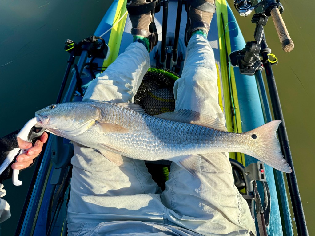 A Lemon Shark circled my kayak looking for my redfish as I hefted it in my landing net from one side of the kayak to the other.