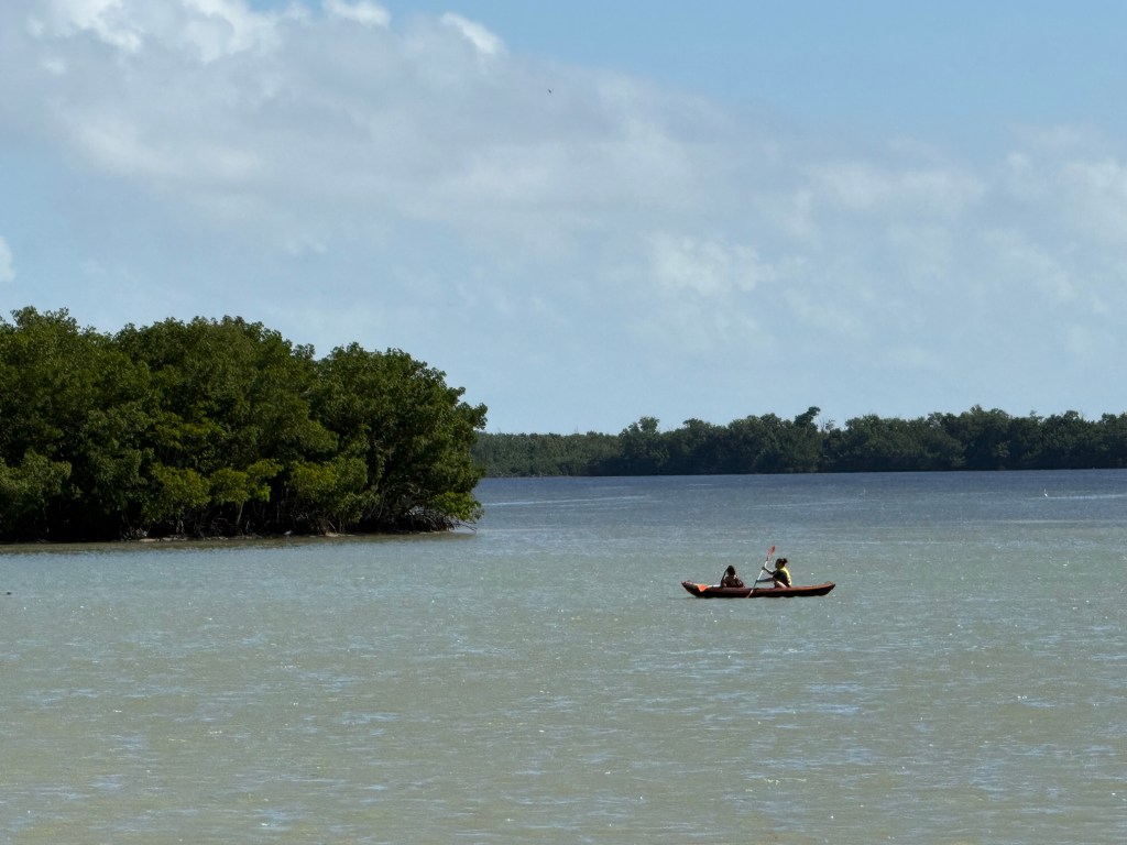 On our way back to the marina, I spotted a young couple in an inflatable kayak paddling the opposite direction, heading toward the heart of the flat. Unless they knew what they were doing, they stood to get stranded in about 20 minutes and stuck there for the next 5 hours. Seeing neither fishing gear nor binoculars, I took them for tourists. I paddled over and asked whether they came here often. “First time” responded the young man in a British accent.