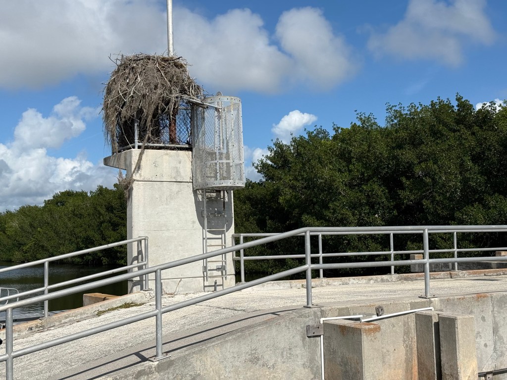 As I packed my gear in the car, I watched another Osprey pair skimming the West Indian Mahogany trees to collect Spanish moss for their bulky nest on the water control lock that separates the Buttonwood Canal from Florida Bay.