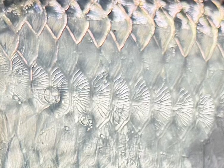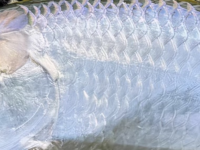 Fish are often camouflaged, some by color and patterns that resemble their backgrounds, others by reflecting the light around them and thus matching any and every background. Tarpon do the latter with scales that work like mirrors.