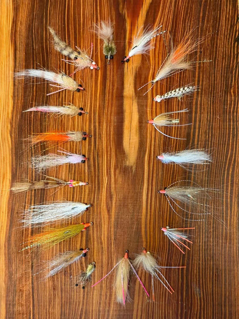 One can buy excellent bonefish flies for $3-10 a pop, but if I can’t be fishing, I like to tie my own flies. It’s fun in small doses and the resulting flies are high quality and adorable to boot. Here’s what I’ve been tying in the odd moments this month when I haven’t felt like doing something more useful to others…